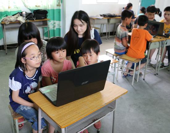 下午,花YOUNG队开始了第一次授课。此次课程为影视鉴赏,虽然没有投影仪,但是队员们都拿出了自己的电脑,几个人一组观看电影。接下来,班主任王嘉欣为小朋友们简单介绍了一下接下来时间队员的授课内容以及需要注意的安全问题。最后,傅媛为学生们上了第一节体育课——武术课,带他们走入博大精深的中国武术文化。