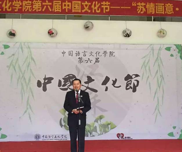 开幕式伊始,全体领导嘉宾为白云区书法家协会与中文学院共建书法教育基地揭牌。方凡泉致开幕词。他指出,国家“一带一路”和“中华文化”走出去的发展战略给我校建设高水平大学带来新的契机与助力。“一带一路”不仅是经济的合作、政治的合作,也是不同文化与文明之间的交流,我们学校在这个国家战略中大有可为,也应当有所作为。中文学院以中国文化节为载体,每年以中国不同的区域文化为主题,以丰富多彩的形式展示各地厚重的文化积淀,深刻的人文内涵,让更多的人了解中国各地不一样的精彩文化,有利于增强师生们的文化自信和民族自豪感。