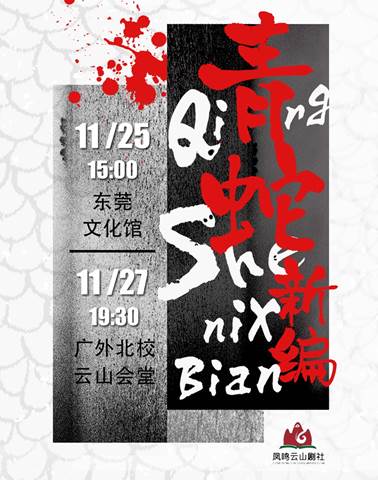 广外外语外贸大学凤鸣云山剧社2018年度话剧——《青蛇新编》将于11月27日(星期二)在云山会堂上演!为方便我校师生观看演出,现将订票事宜以及有关安排通知如下: