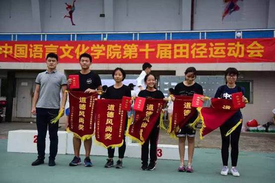 赛后,各班方阵整齐有序地在操场集合。经过一系列紧张而又严谨的计分统计,汉教1501等5个班级荣获体育道德风尚奖,团体总分冠军则被文管14收入囊中。