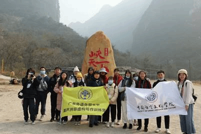 中午抵达蒲芦洲村后,团队受到了学校扶贫驻村工作队队长林安杰老师,黄燕仪师姐等的热情款待。饭后,团队前往蒲芦洲扶贫开发项目之一的广东峡天下景区进行采风。