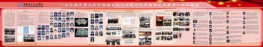 广东外语外贸大学中国语言文化学院成立于2005年。自2007年招收首批学术型研究生以来,中文学院的学位和研究生教育已走过了十年的历程(2007-2016)。十年来,在学校领导、研究生院和相关单位的关心、支持下,中文学院的研究生教育工作取得了突出的成绩和长足的进步。现拥有中国语言文学一级学科硕士学位授予权,下设4个二级学科硕士学位点:文艺学、比较文学与世界文学、中国古代文学、文化传播与媒介(自主增设,设在新闻学院),现有导师20人,在校研究生3个年级44人。设有汉语国际教育中心,现有导师19人,有在校汉语国际教育硕士生2个年级141人,外国留学生2个年级35人。