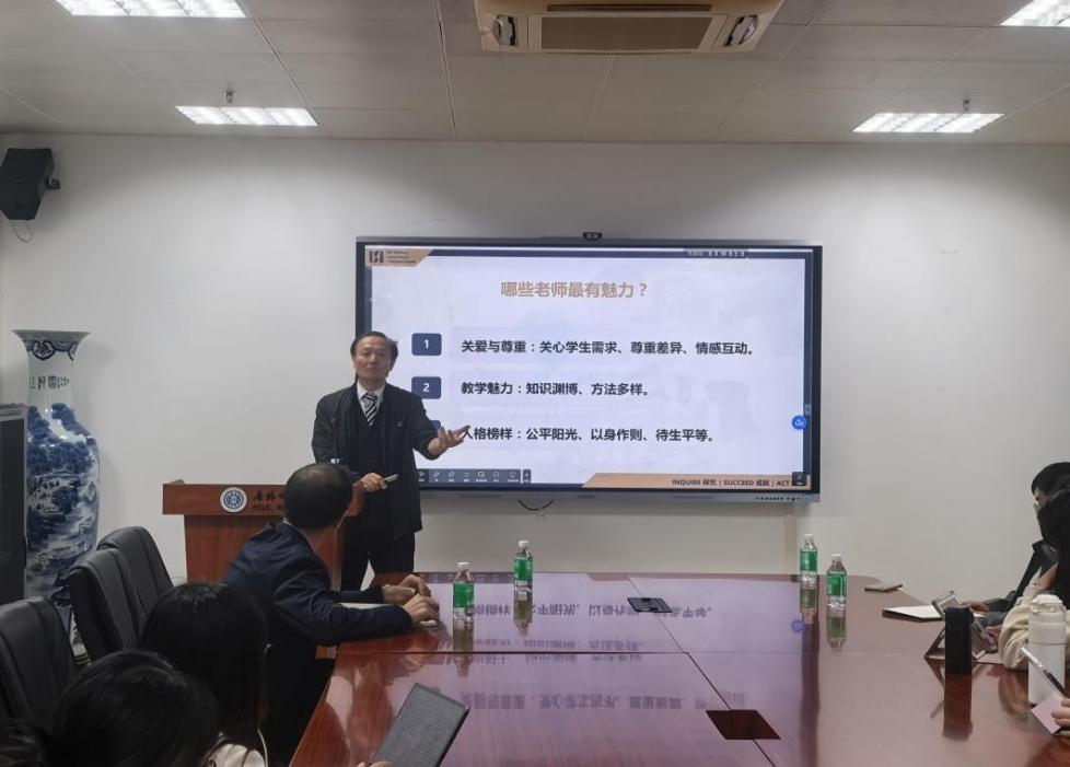 2025年12月18日晚上,广州知名校长、中学语文高级教师、荔湾区爱莎文华学校廖珂校长应邀在白云山校区第七教学楼407会议室作专题讲座,讲座由贝先明教授主持,近30名师生参与。廖珂校长以“如何成为骨干乃至专家型中小学教师”为主题,为在场师生作了全面而深入的经验分享。